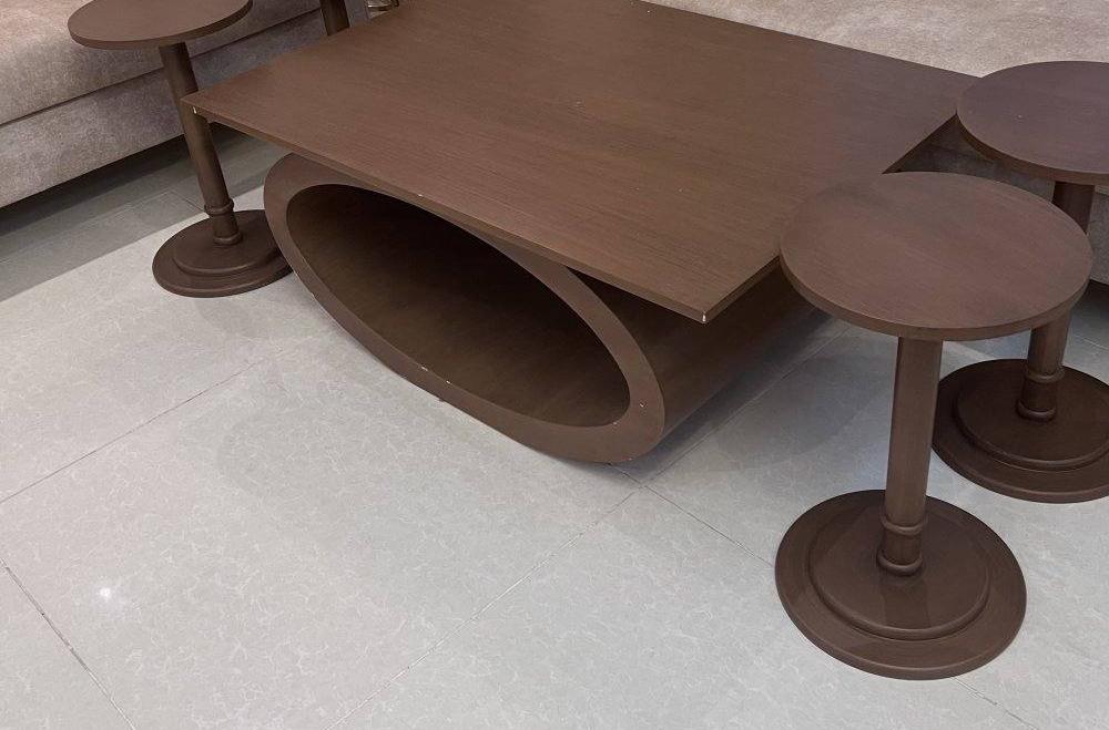 طاوله كبيره وسط مع اربع طاولات تقديم استعمال خفيف