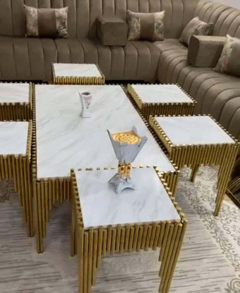 طاولة مع 6 خدمه مع كونسول مع مراية كبيره للكونسول نحاس ورخام