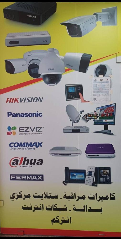 تركيب كاميرات مراقبة داخلية وخارجية انتركم صوتي ومرئي ستلايت مركزي شبكات انترنت سماعات سقف