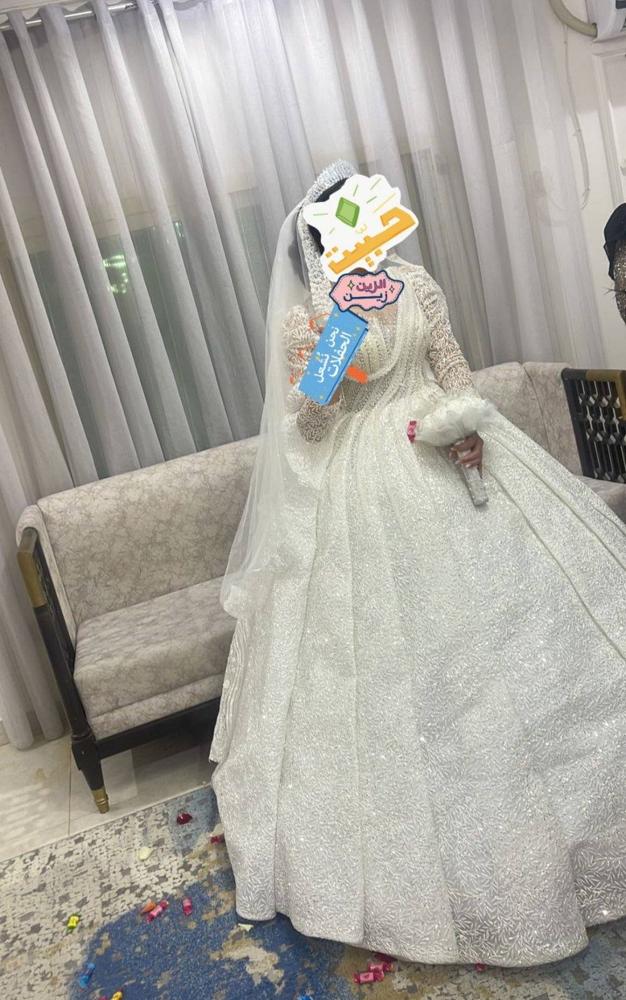 للبيع فستان عرس تفصال سوري يلبس احجام مع الاكسسوار وطرحة ورداء استعمال مرة وحدة نظيف مع الكيس ماله